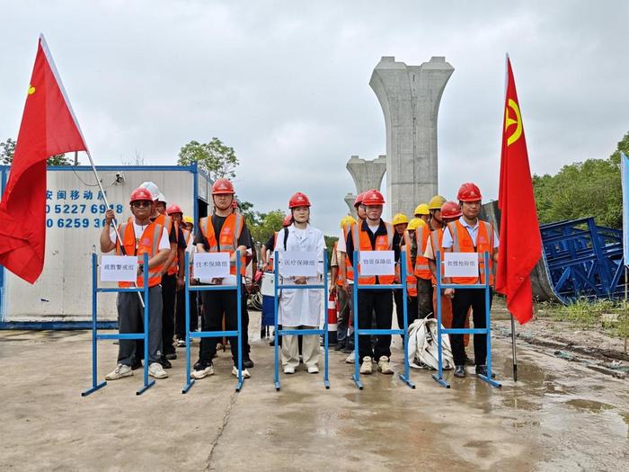 這次演練那叫一個 “真”,直接把場景拉滿:強(qiáng)臺風(fēng)預(yù)警,施工現(xiàn)場暴雨如注,局部積水,還有一名工人在加固掛籃時被強(qiáng)風(fēng)一吹,直接高處墜落!項目這邊反應(yīng)賊快,立馬啟動高處墜落應(yīng)急預(yù)案。安全管控組、醫(yī)療救護(hù)組、技術(shù)保障組、搶險救援組、對外協(xié)調(diào)組這 5 個應(yīng)急行動組瞬間 “上線”,各司其職又配合默契。