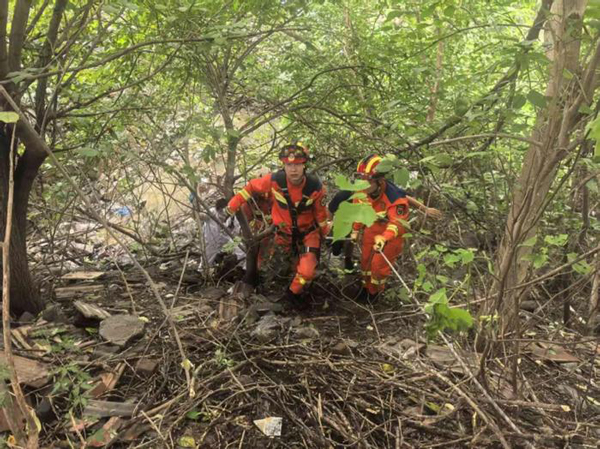 在石景山區(qū)五里坨街道胡家?guī)X北側(cè) 300 米拉拉湖水庫下山區(qū),一名男子因在水庫邊釣魚時不慎墜落到背后的山溝里,腿部受傷被困,情況十分危急。