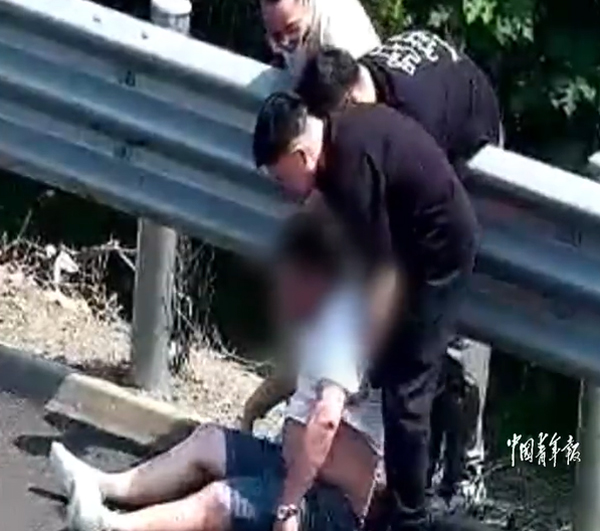 有人拿著滅火器對準濃煙噴去,試圖壓制火勢;有人沖到車邊,拼盡全力幫司機推開車門;還有人緊緊托住司機,一點一點將他從車內(nèi)挪到安全地帶。整個救援過程緊張有序,大家配合默契,仿佛早就排練過無數(shù)遍。滅火器的干粉在空中彌漫,但所有人的心思都只在救人這一件事上。
