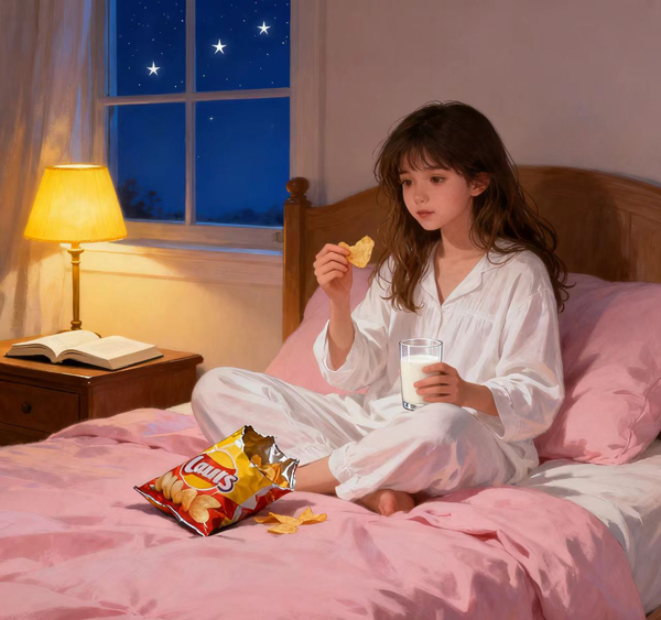 當(dāng)晚餐所吃的食物基本被消化后,人體在睡前容易感到饑餓。如果此時進(jìn)食,不久后便要入睡,未被消耗的熱量就容易囤積在身體里,造成肥胖。像一些小伙伴,晚上追劇、玩手機游戲時,常常會忍不住吃些堅果、薯片、巧克力之類的零食,或者喝點奶茶、可樂等含糖飲料,這些高熱量食物在睡前攝入,可就很難被消耗掉了。