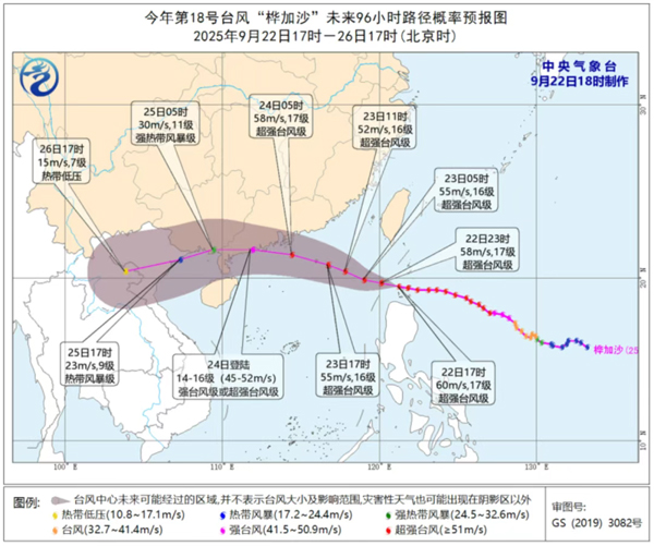 今年第 18 號(hào)臺(tái)風(fēng)“樺加沙”(超強(qiáng)臺(tái)風(fēng)級(jí))正來勢(shì)洶洶向廣東沿海逼近。截至今天 22 日 17 時(shí),“樺加沙”中心位于廣東省陽江市東偏南方向約 990 公里的巴士海峽海面上,中心附近最大風(fēng)力 17 級(jí)(60 米 / 秒)。中央氣象臺(tái) 22 日 18 時(shí)發(fā)布臺(tái)風(fēng)橙色預(yù)警,預(yù)計(jì)“樺加沙”將于 23 日凌晨移入南海東北部海面,24 日在廣東深圳到徐聞一帶沿海登陸(強(qiáng)臺(tái)風(fēng)級(jí)或超強(qiáng)臺(tái)風(fēng)級(jí),14 - 16 級(jí),45 - 52 米 / 秒),登陸后強(qiáng)度逐漸減弱。