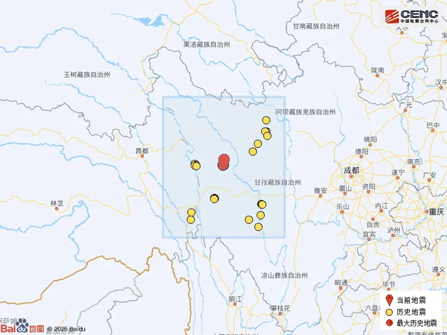 歷史地震:根據(jù)中國地震臺(tái)網(wǎng)速報(bào)目錄,震中周邊200公里內(nèi)近5年來發(fā)生3級(jí)以上地震共24次,最大地震是2025年10月9日在四川甘孜州新龍縣發(fā)生的5.4級(jí)地震(距離本次震中1公里),歷史地震分布如圖。