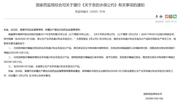 全面禁產(chǎn)時間:自2026年1月1日起,全面禁止生產(chǎn)含汞體溫計和含汞血壓計產(chǎn)品。