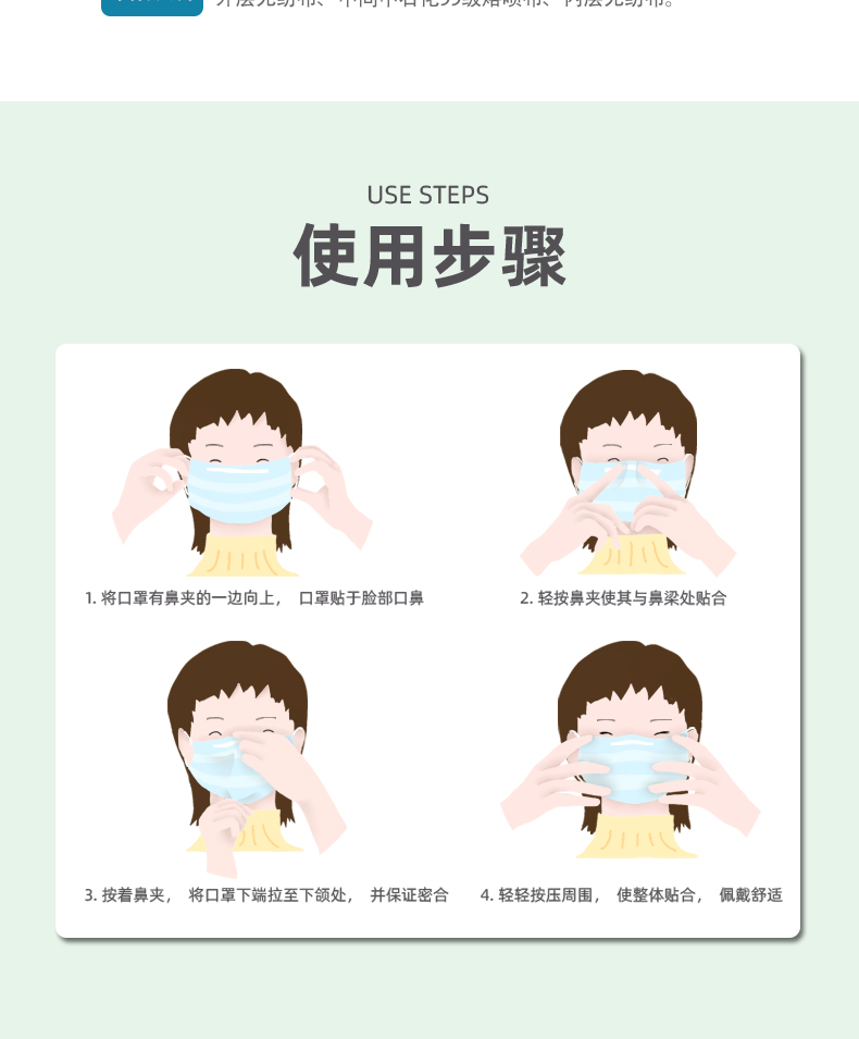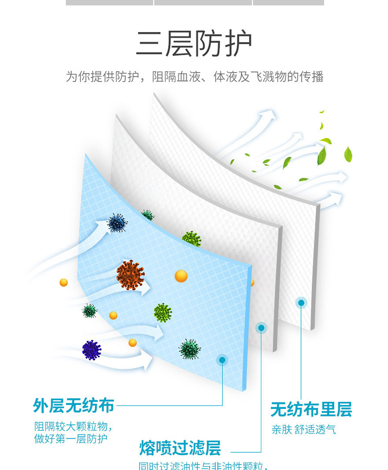 【適用范圍】醫(yī)用外科口罩適用于醫(yī)務(wù)人員或相關(guān)人員的基本防護(hù),以及在有創(chuàng)操作過程中阻止體液和噴濺物傳播的防護(hù)。