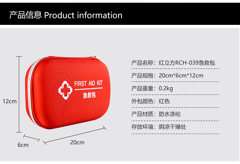 | 型號(hào):RCH-039急救包 | 材質(zhì):高強(qiáng)度防水滌綸 | 顏色:紅 | ||||||
