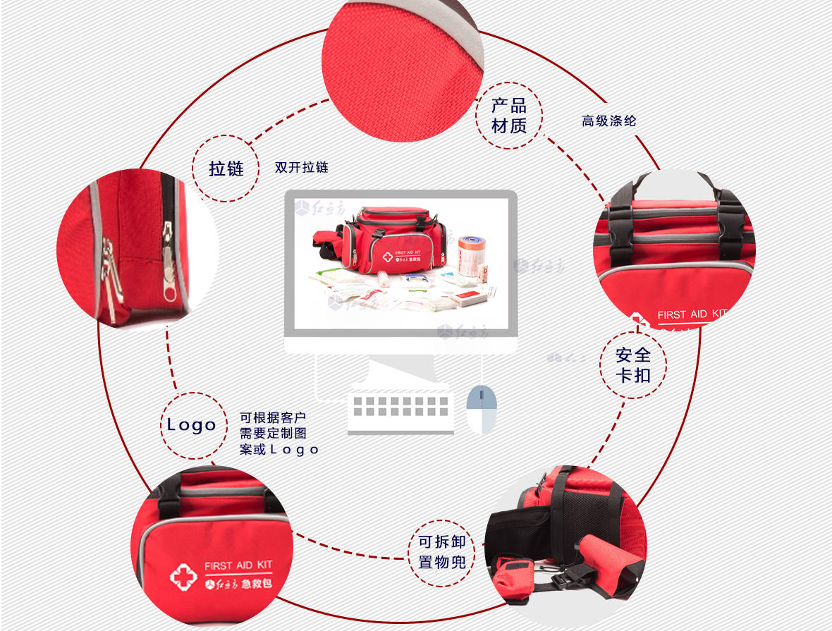 | 型號:RCH-099急救保障包 | 材質(zhì):滌綸 | 顏色:紅色 | ||||||